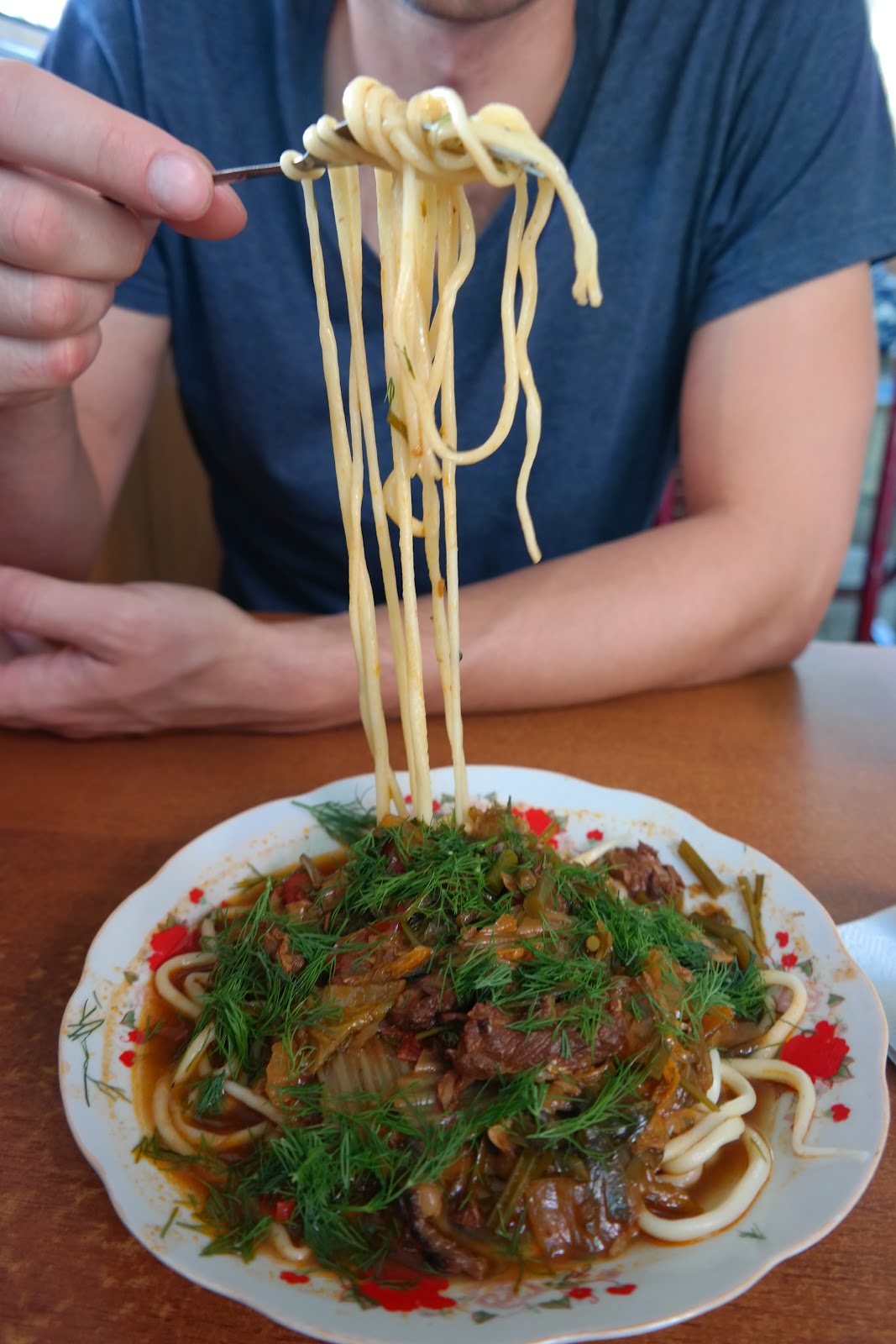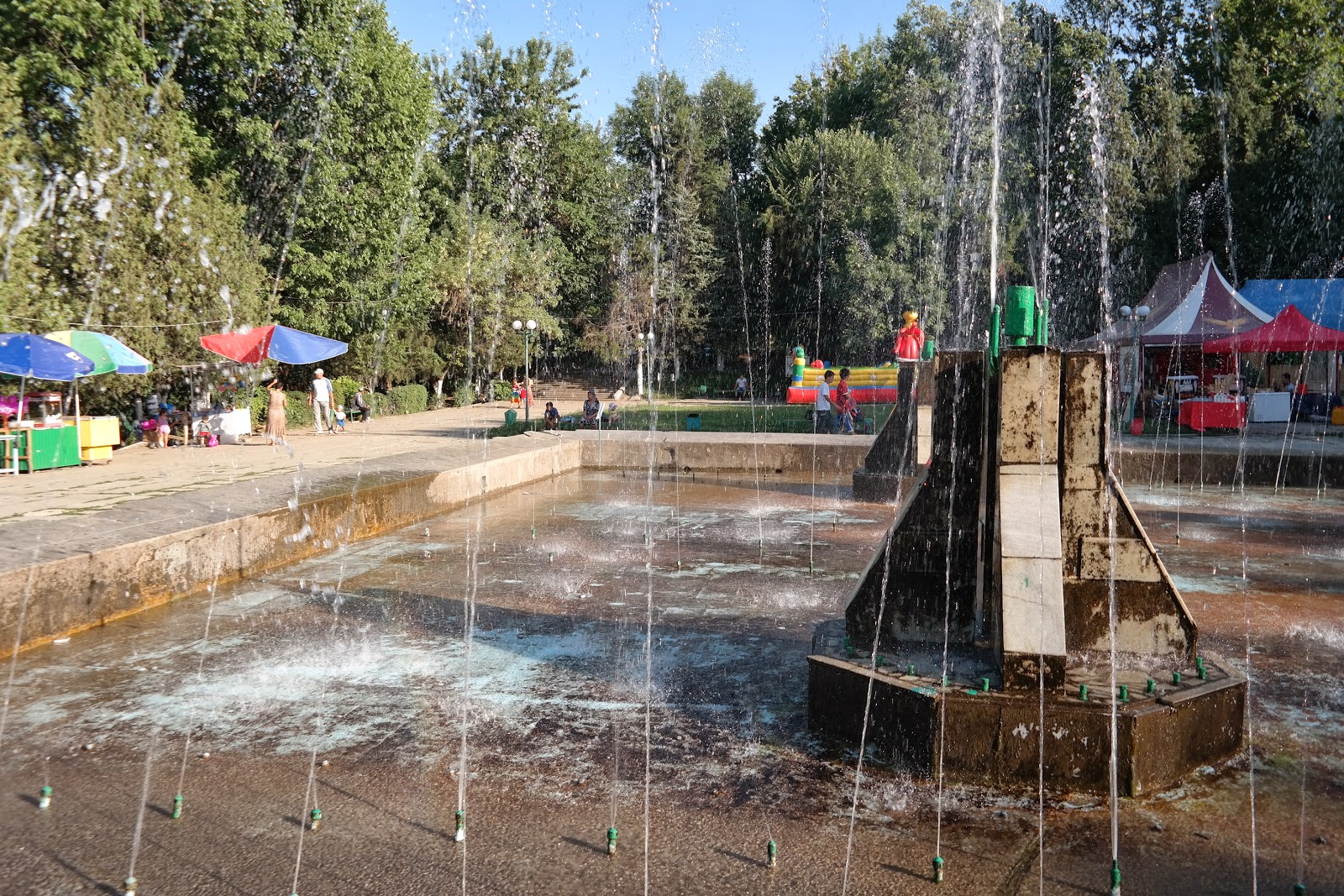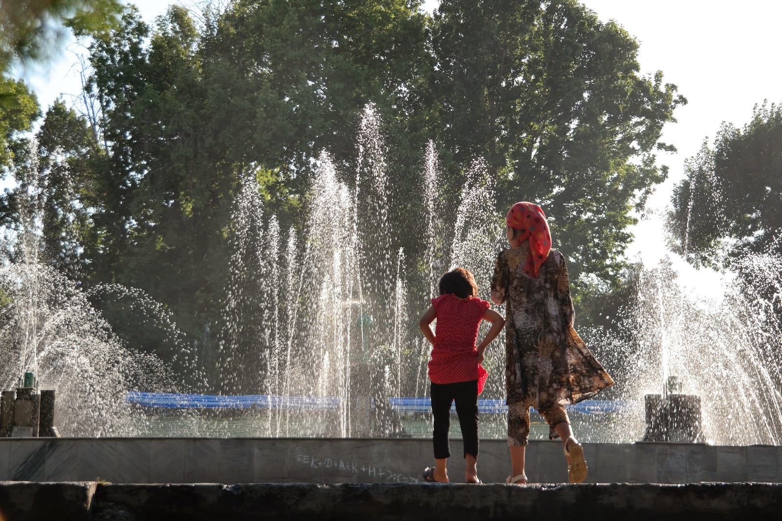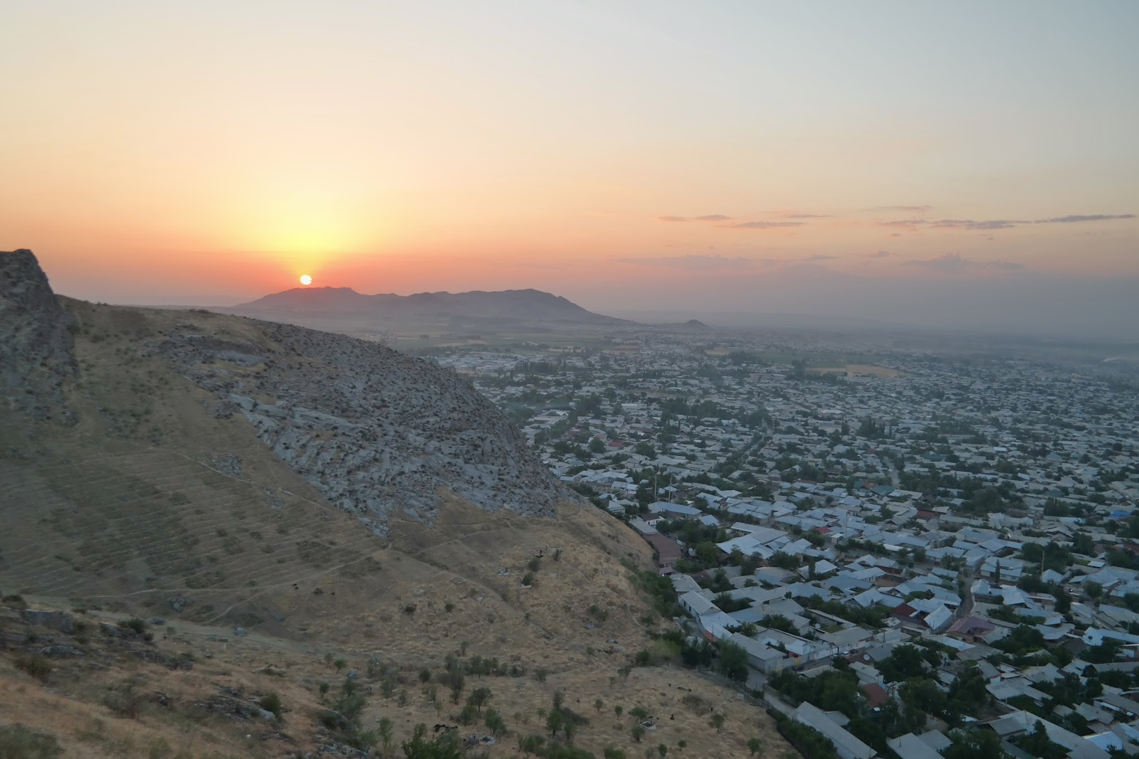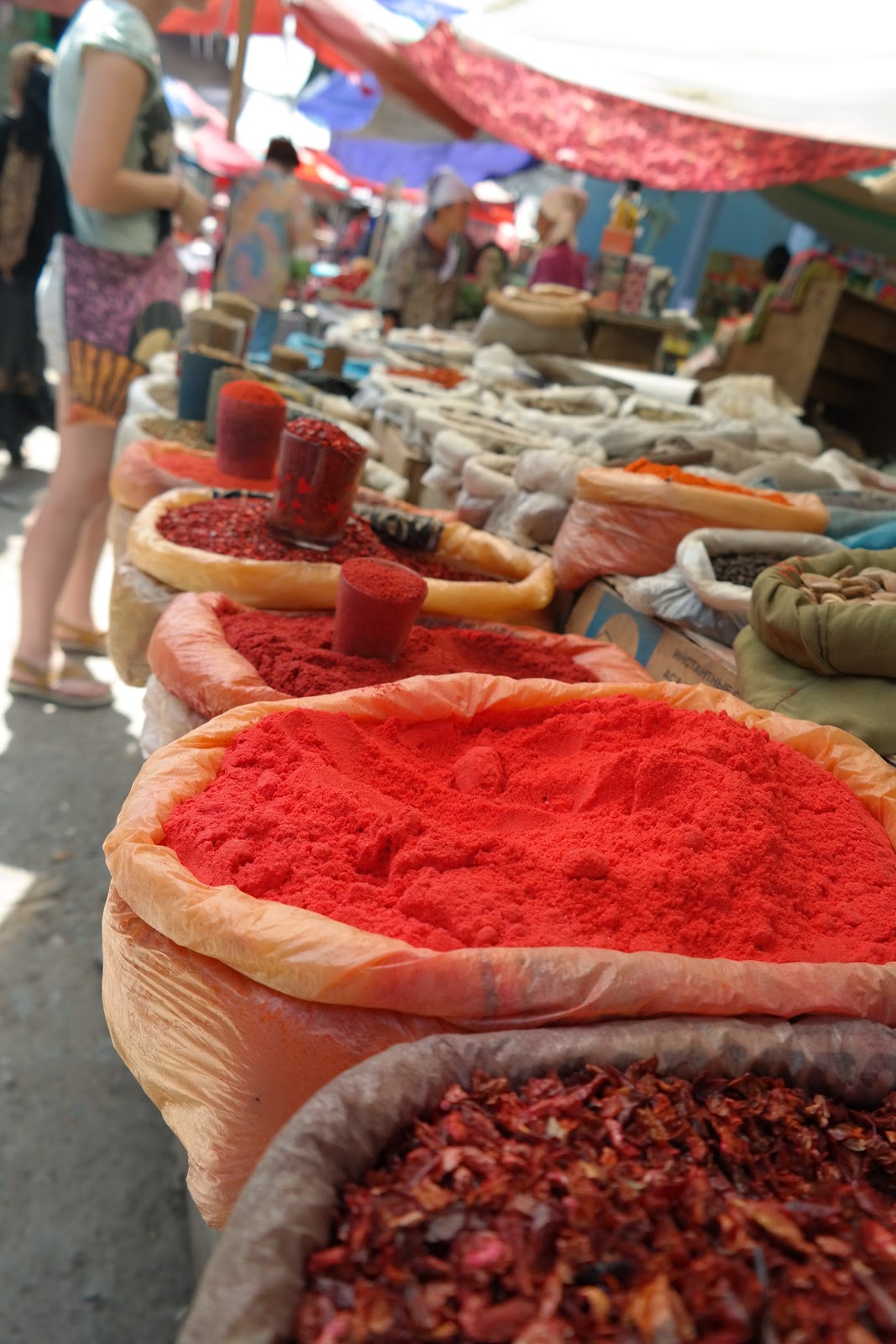 Pierwsze wrażenie : Bardzo gorąco! Teraz małe poparcie w liczbach: 2 litry wypitej wody, daje nam w Osz, pod wpływem 45 stopni Celcjusza w cieniu zero potu i zero sikania. Baaaardzo gorąco!
